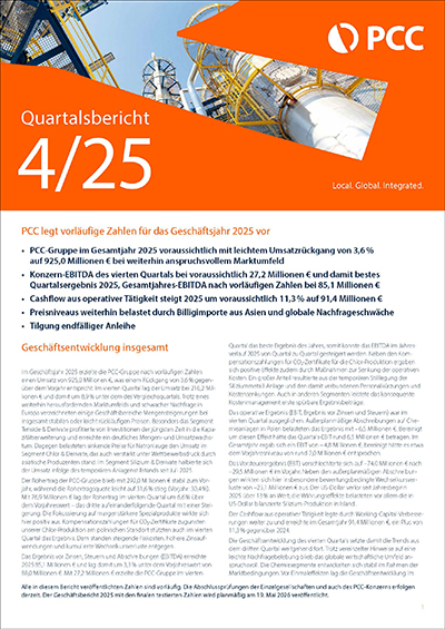 ** Die Kennzahlen zum 31.12. sind den geprüften und mit uneingeschränkten Bestätigungsvermerken versehenen Konzernabschlüssen des PCC-Konzerns nach IFRS entnommen.